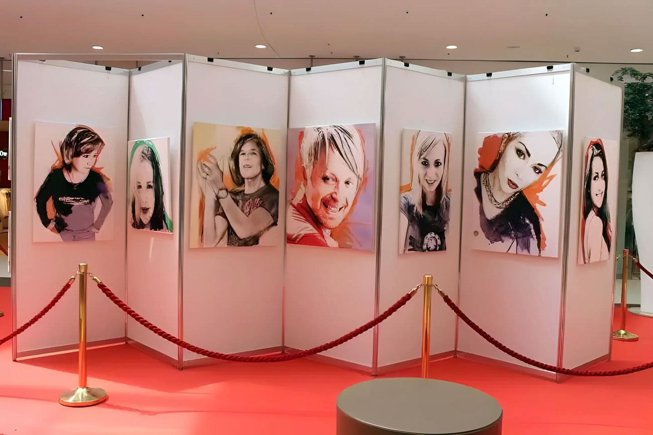 Modulare, wachsende Porträtwand der „Heroes“ der Stadt, 2024 im City Center erstmals vorgestellt.